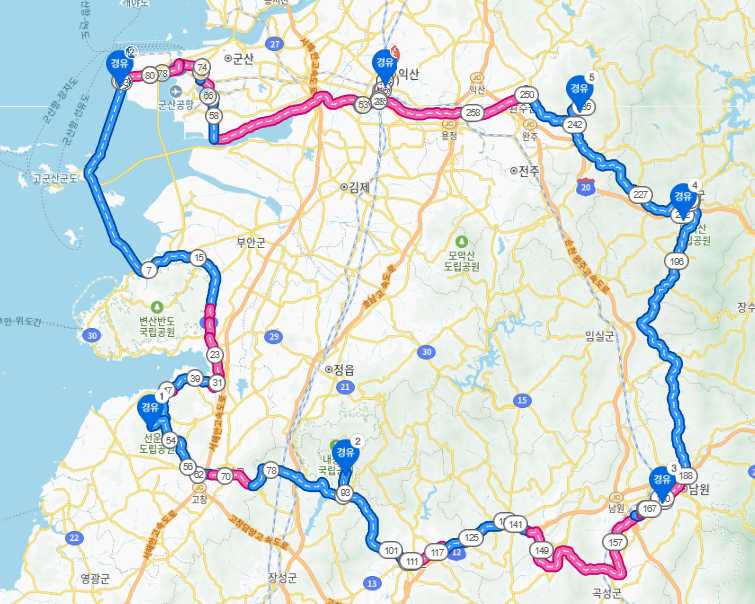 이렇게 전라북도를 한바퀴 돌아온길은 주행거리 397.4km 1000리 길입니다.